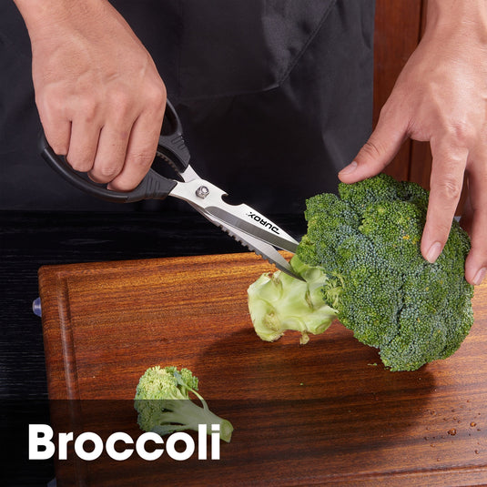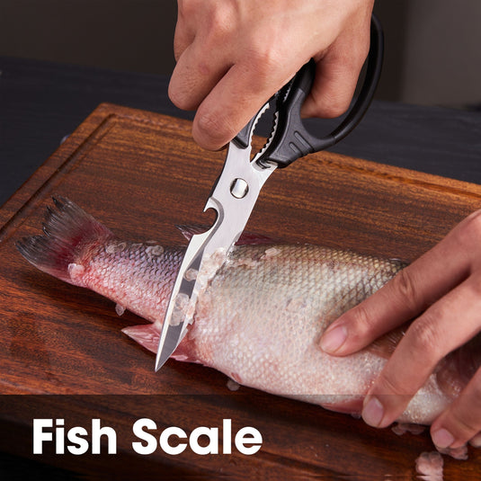Our Come-Apart Kitchen Scissors Feature a Built-In Sharpener, Ultra-Fine Serrations, and Multi-Functional Blades for Cutting, Cracking Nuts, Opening Bottles, Scaling Fish, and More.