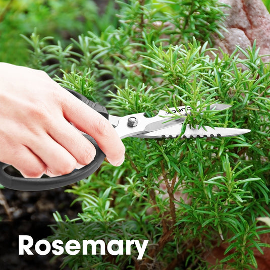These scissors are versatile and sharp, perfect for cutting everything from meat to opening packages. They even come with a handy sharpener on the protective cover. I've used it to sharpen my other scissors and pruners.Bought another pair for my herb garden.