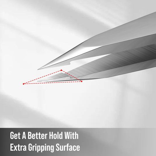 Tips: Regardless of the tip shape (slanted, pointed, flat, etc.), precision is crucial. The tips should be precisely aligned and symmetrical, with no gap between them when closed. This alignment ensures that the tweezers can grasp and pull even the smallest hairs or objects effectively.