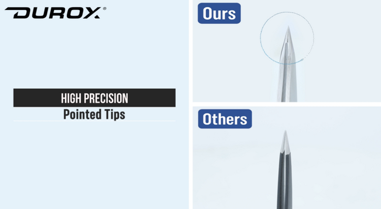 These tweezers offer high precision compared to those typically found in big box stores. Each pair undergoes manual honing and inspection of the tips before packaging, ensuring superior accuracy and quality control.